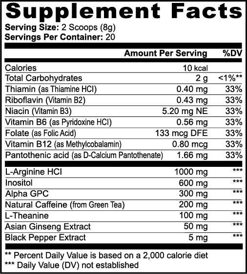 Mix 2 scoops (8 g) with 16 fl oz (480 mL) of water or adjust to taste. Use before gaming, studying, or any high-focus activity.